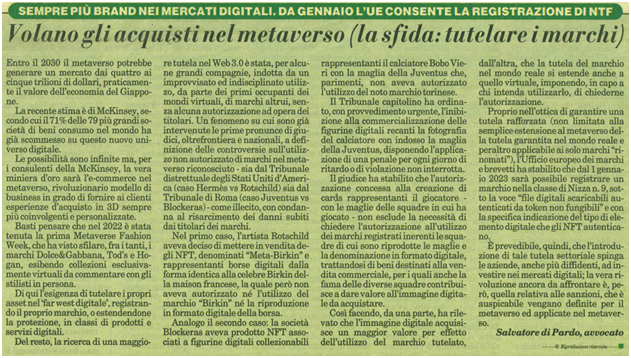 Volano gli acquisti nel metaverso. La sfida è tutelare i marchi delle aziende che investono in beni digitali